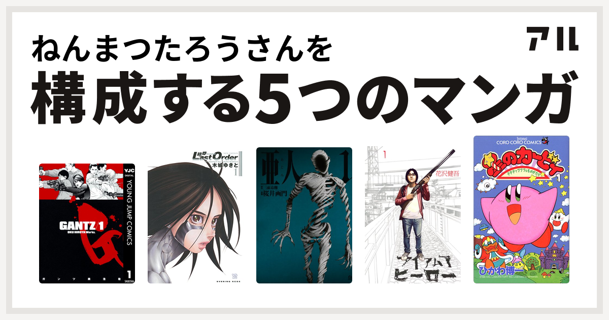 ねんまつたろうさんを構成するマンガはgantz 銃夢 Last Order New Edition 亜人 アイアムアヒーロー 星のカービィ デデデでプププなものがたり 私を構成する5つのマンガ アル